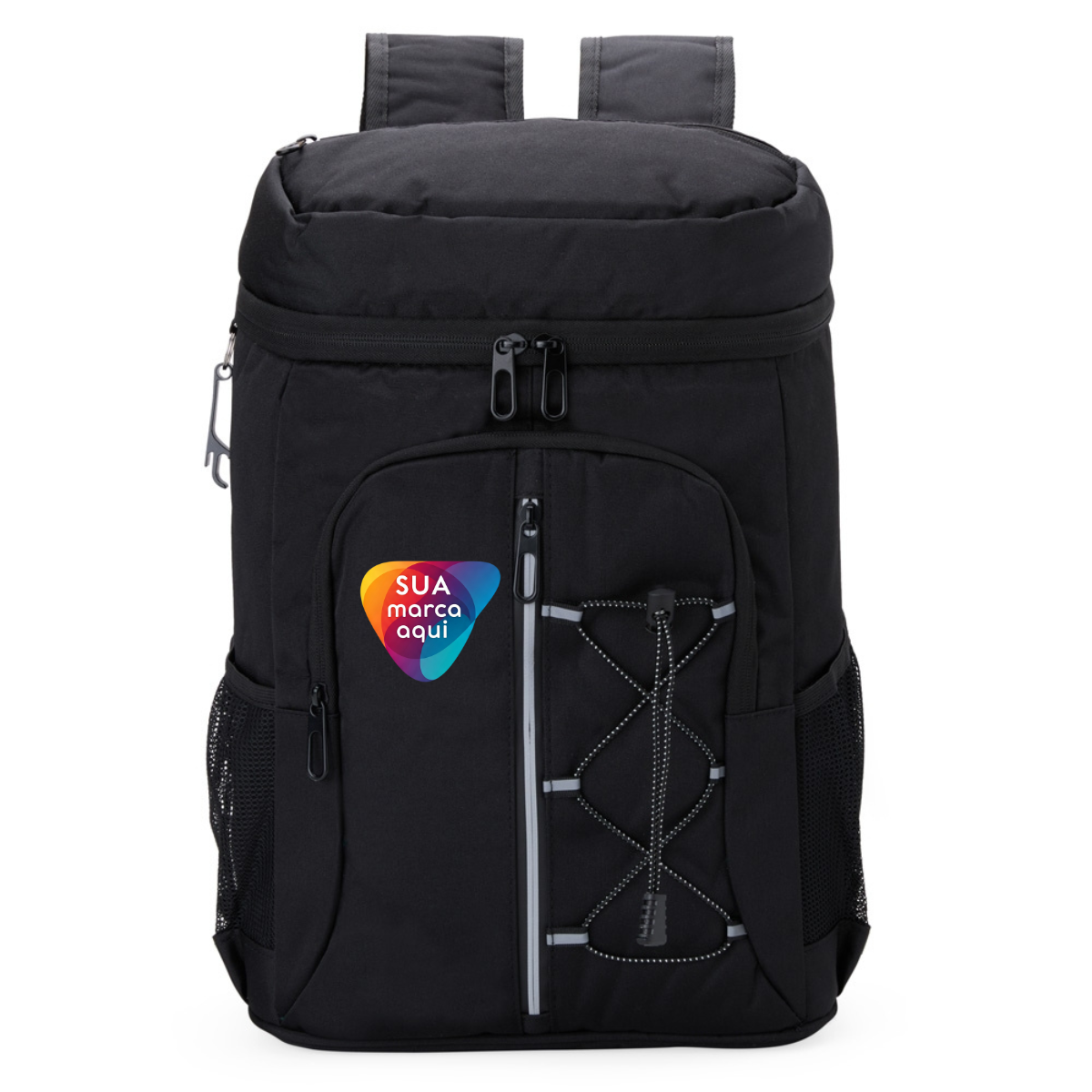 Mais que uma bolsa térmica, ela possui capacidade de 30 litros e alças que permitem carregá-la nas costas. Feita em oxford, é resistente à água e conta com quatro compartimentos: um com revestimento térmico em PEVA atóxico e costura soldada antivazamento, perfeito para manter os alimentos na temperatura ideal ou armazenar gelo, deixando as bebidas sempre geladinhas; outro para frutas, iogurtes e saladas; e dois na parte frontal com zíper, sendo um deles com faixa refletiva e elástico ajustável. Nas laterais, bolsos de tela oferecem fácil acesso a garrafas e outros itens. Para completar, inclui um chaveiro abridor de garrafas, ideal para facilitar ainda mais o momento de lazer.
