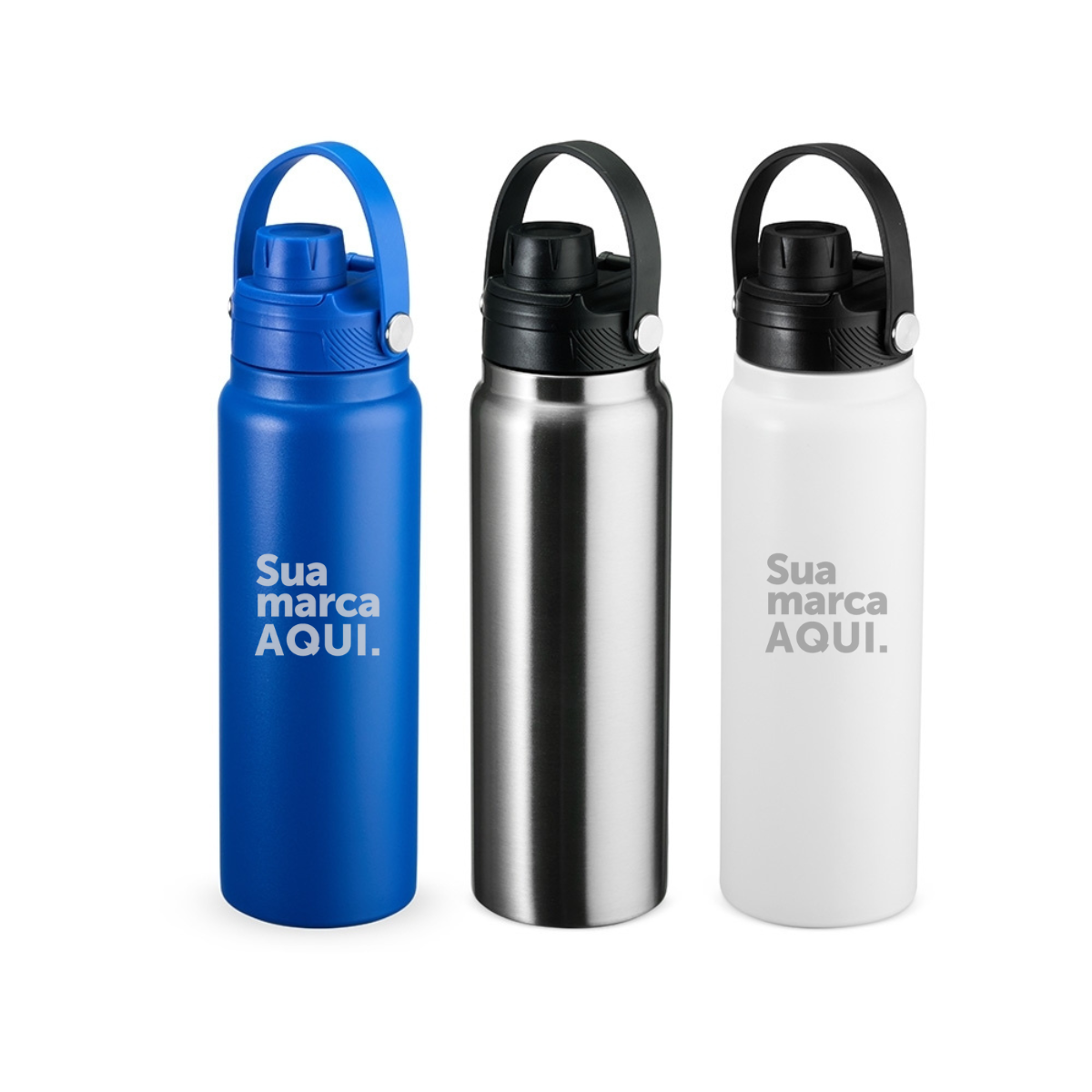 Garrafa térmica em inox com capacidade de até 800ml. Conta com estrutura de parede dupla e vedação a vácuo, o que possibilita manter a temperatura de líquidos por mais tempo. Possui tampa plástica rosqueável com protetor para o bocal e alça para transporte