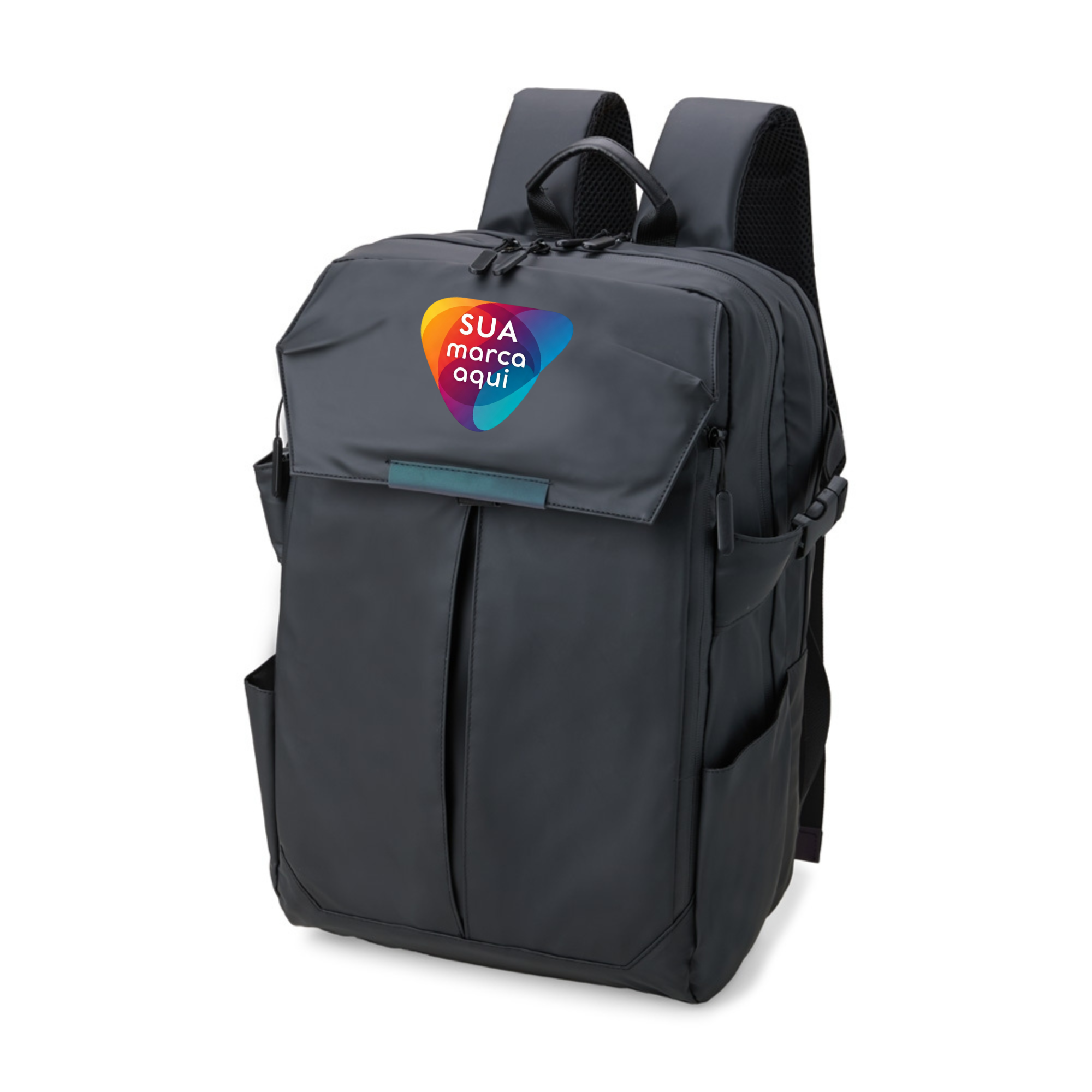 Mochila de 33 Litros confeccionada em couro sintético resistente à água. Contém três compartimentos, sendo um deles exclusivo para acomodar capacete de bicicleta e outro para notebook de 15,6" com revestimento aveludado. A mochila possui faixa e detalhes refletivos, bolsos externos nas laterais, bolso interno de plástico exclusivo para itens molhados, bolso interno de tela, alça para engate em mala de viagem, alça regulável revestida com espuma, parte traseira também revestida com espuma para maior conforto e fivelas para melhor expansão e segurança da mochila.