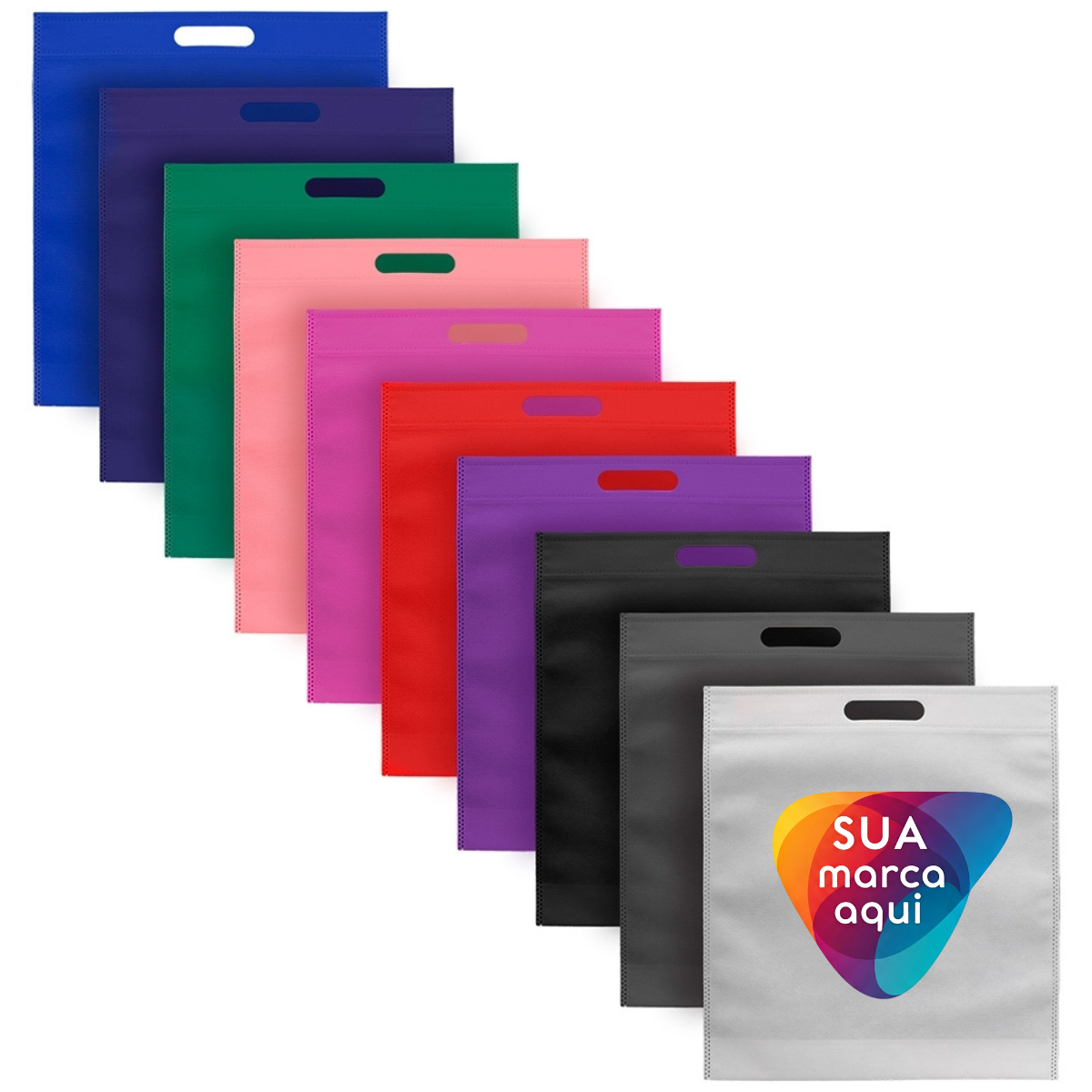 Sacola em TNT, prática e resistente, ideal para uso diário, compras ou ações promocionais. Produzida em material leve e durável, oferece ótimo espaço interno para o transporte de diversos itens com segurança. Versátil e funcional, é uma excelente opção para quem busca praticidade e ótimo custo-benefício.